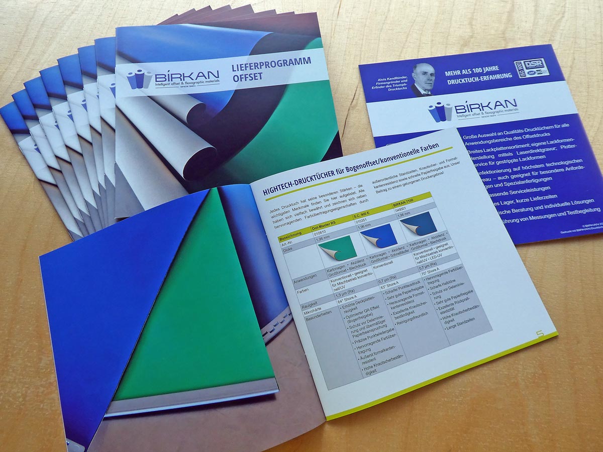Noch umfangreicher als der bisherige Katalog – mehr Informationen, mehr Fotos, noch bunter: genau wie das Kernsortiment unserer Drucktücher, das mittlerweile gut 30 verschiedene Drucktücher und Lackplatten umfasst (weit über 40, wenn man alle Stärken mitzählt)!